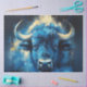 blue bison painting, abstract animal art, modern wildlife artwork, vibrant buffalo portrait, contemporary animal painting, colorful bison art, artistic animal depiction, bold wildlife painting, blue buffalo canvas, expressive animal art,
