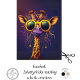 Funky giraffe with yellow sunglasses, trendy giraffe art, wild-haired giraffe illustration, stylish giraffe painting, quirky animal portrait, fashionable giraffe with earrings, bold giraffe wall decor, cool giraffe aesthetic, giraffe with attitude, playful giraffe art print