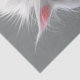 This digital illustration features a fluffy white cat with exaggerated features, standing on its hind legs. The cat has large, expressive blue eyes and a small pink nose, with a tuft of fur on its head standing up straight. The cat’s slightly grumpy expression and the brown spots near its feet add a whimsical and playful touch to the artwork. The simple background ensures that the focus remains on the cat’s unique and charming character.
