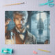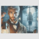 A steampunk lighthouse keeper on a moonlit night with sailing ships in the background and stunning blue eyes inspired by the mystery of the sea. This is perfect for crafts like decoupage!