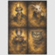 This design features a dramatic four-panel character collection including a mysterious tea-loving gentleman, a curious pocket-watch rabbit, a powerful royal queen, and a mischievous grinning cat. Each portrait is surrounded by glowing golden energy that gives the entire set a magical, dreamlike atmosphere.