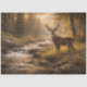 deer forest artwork, wildlife sunset scene, rustic nature decor, majestic buck illustration, woodland stream art, outdoor cabin wall art, hunting lodge decor, forest landscape print, golden hour wildlife painting, serene nature artwork, rustic country home decor, woodland animal design, peaceful forest scene, wildlife decoupage paper, nature lover gift art