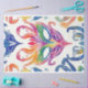 This vibrant watercolor illustration showcases a traditional Mardi Gras mask surrounded by fleur-de-lis patterns, embodying the festive spirit and cultural significance of the carnival season in New Orleans.