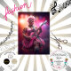 Set against a backdrop of neon lights in pink, purple, and blue, this design captures the raw energy of live music, bold fashion, and fearless self-expression.