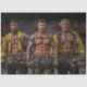 Heat, grit, and raw strength come together in this bold firefighter‑themed design. Three tattooed, muscular firefighters stand in a smoky, rugged scene, gear slung low and worn from the work. Their suspenders, jackets, and soot‑streaked clothing create a dramatic contrast against the blurred, smoky backdrop, capturing the intensity and resilience of frontline heroes. This artwork brings attitude, power, and a touch of chaos — perfect for projects that call for firehouse energy, masculine edge, and a striking visual story.
