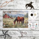 Rustic horse meadow artwork, wildflower field horse image, farmhouse barn and horse painting, pastoral horse scene with mountains, vintage horse grazing photo, countryside horse decoupage paper, brown horse with white stripe artwork, red barn rural landscape print, textured horse meadow design, handcrafted equine nature décor