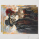 The background showcases a dramatic cloudy sky with warm orange and yellow hues, creating an intense and mysterious atmosphere. This unique blend of macabre elegance, Victorian aesthetics, and steampunk influences makes the design ideal for decoupage paper and furniture artistry.