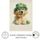 St. Patrick’s Day decoupage paper, golden retriever artwork, Irish holiday dog design, shamrock hat illustration, whimsical St. Paddy’s Day craft paper, watercolor puppy décor, festive green decoupage sheet, mixed‑media Irish theme, furniture art supplies, cute dog St. Patrick’s Day design, spring holiday crafting.