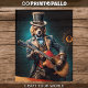 A rocky golden retriever musician playing guitar in steampunk attire. A perfect design on quality tissue paper for your furniture up-cycling or restyling.