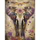This vibrant and captivating digital artwork features a majestic elephant adorned with intricate mandala patterns and surrounded by colorful flowers and butterflies. The bold colors and intricate details create a mesmerizing and spiritually uplifting image. The elephant, a symbol of wisdom and strength, is depicted with a serene expression, inviting viewers to connect with its inner peace. This artwork is a celebration of nature, spirituality, and the power of imagination.