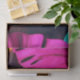 This striking image features a woman’s hand gently resting against a collection of vivid tropical leaves. The foliage bursts with rich shades of pink, yellow, and green, creating a mesmerizing contrast against her skin tone. The intricate vein patterns on the leaves add texture and depth, making the scene feel lush and immersive. A warm, glowing yellow background enhances the organic beauty, radiating a lively, almost dreamlike atmosphere. The interaction between the woman and nature evokes a sense of harmony, as if she is completely in tune with the vibrant environment surrounding her.