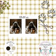 This cheeky collage features two identical photos of a black bear cub cozied up in a basket, wrapped in white toilet paper and nestled beside a teddy bear. Surrounded by rolls of TP and playful props, the scene radiates humor and charm. Set against a beige-and-white checkered backdrop, the layout includes greenery sprigs, bear paw prints, ornate scissors, and branded logos—blending rustic whimsy with polished presentation. The “12x15 ea.” label suggests canvas sizing, perfect for showcasing this mischievous moment in creative formats.