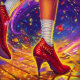 golden brick road art, fantasy journey story, fairytale self-discovery, red shoes magic path, Wizard of Oz inspired, whimsical empowerment tale, magical realism narrative, dreamscape adventure, glowing road story, empowering fairy tale aesthetic.