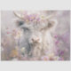 White Highland cow floral crown, pastel landscape dreamy soft hues,