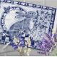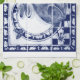 In blue and white tones with a "crackled glaze" look, this towel features my ceramic tile art bunny rabbit and a vase of daisy flowers. The border and other motifs were inspired by antique and vintage Dedham, Delft and chinoiserie pottery. This would be fun kitchen decor, or as a gift for anyone who loves bunny rabbits, animals and nature. Whimsical, unique, original artwork & design by Tuzi Williams.