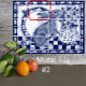 This is Tile # 2 of a twelve-tile ceramic tile mural, featuring a cute bunny rabbit and a vase full of daisies. Dark navy blue and white tones are accented with a crackled glaze. Bunnies and carrots border the design. Inspired by antique Dedham pottery, Delft porcelain, and oriental chinoiserie motifs and colors. A beautiful and fun accent for blue and white decor, pottery collectors, and bunny rabbit and animal lovers - use the mural as a backsplash in a kitchen, bathroom, or space of your choice! Each tile of the mural is sold separately; there are twelve tiles in the mural. The tiles are available in 4 1/4" and 6" sizes. Dimensions: The completed 4 1/4" tile mural measures 12.75" x 17". The completed 6" tile mural measures 18" x 24". Whimsical, unique, original artwork & design by Tuzi Williams. Artwork is copyrighted.