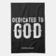 DEDICATED TO GOD COOL CUSTOMIZABLE WHITE TEXT KITCHEN TOWEL