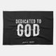 DEDICATED TO GOD COOL CUSTOMIZABLE WHITE TEXT KITCHEN TOWEL