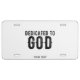 DEDICATED TO GOD CUSTOMIZABLE COOL BLACK TEXT LICENSE PLATE