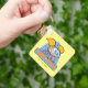 The key chain is made of metal and really sturdy. The flower design is really cheerful. The logo and colors are clear and crisp!