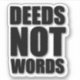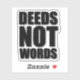 Deeds not words inspirational white & black Sticker. Motivational saying.