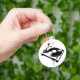 Deejay DJ Turntable keychain with a black image of spinning vinyl on the deck.