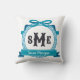Deep Aqua Blue Greek Key Bow Monogram Throw Pillow