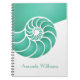 A custom nautical notebook design featuring a deep aqua nautilus shell and personalized name. Replace the sample name shown in the design template with your desired name or other text.