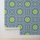 This captivating peel and stick wallpaper combines timeless elegance with modern flair. The intricate design draws inspiration from traditional Moroccan tiles, creating a stunning visual impact for any space. The deep blue background sets the stage for an interconnected white lattice framework. Within this lattice, symmetrical green medallions with lighter green centers add a refreshing touch. The graphic style seamlessly blends historical charm with contemporary aesthetics. Ideal for accent walls, bedrooms, or home offices.