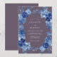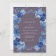 A romantic cascade of deep blue blossoms and foliage adorns this design. The watercolor style imparts a soft, ethereal feel, perfect for a chic celebration. This painterly floral motif creates an enchanting atmosphere.