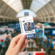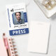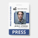 Vertical press ID with blue as an accent color. Add photo, logo, name, title, ID number and more.