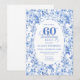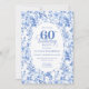 Deep Blue Toile Roses 60th Birthday Invitation
