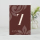 Combine classical elegance and modern sophistication with this elegant table number card in deep burgundy, featuring a hand-drawn damask motif and a chic classic script. Choose a shade to suit your style and simply personalize it with your details (table number, couple names, and the date) [Note: Add each table number to your cart individually before checking out.]