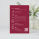 Share all your important wedding information in a timeless and elegant way with this Burgundy Wedding Details Card. Designed with a rich burgundy background and classic serif typography, this formal insert card is perfect for including reception details, hotel accommodations, RSVP instructions, and a QR code for your wedding website.