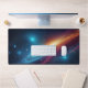 Deep Cosmic Cyan Magenta Abstract Space Nebula Desk Mat