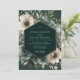 A rich tapestry of deep emerald hues envelops this design, showcasing a dramatic floral arrangement. Creamy white blossoms and muted teal foliage intermingle, creating an atmosphere of opulent romance and sophisticated charm. The artwork evokes a feeling of timeless elegance.