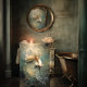 The fluid brushstrokes and atmospheric depth of this piece bring an underwater fantasy quality to any project. The cream and ivory tones of the betta's flowing fins glow against the brooding teal background, creating a striking focal point that works beautifully as a centrepiece on a furniture drawer, tray, or decorative panel.