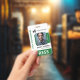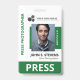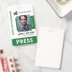 Vertical press ID with green as an accent color. Add photo, logo, name, title, ID number and more.