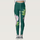 deep green with large pink flower pattern floral leggings