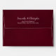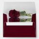 These beautiful burgundy wedding envelopes are perfect for making your invitations all the more special. They feature a romantic design on the inside flap with a single long stemmed burgundy, maroon, or wine red colored rose reflecting in a pool of water. The back flap has your return address in lacy script calligraphy. Sophisticated and chic, these envelopes will add a touch of class to any mailing.