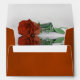 These beautiful deep orange wedding envelopes are perfect for making your invitations all the more special. They feature a romantic design on the inside flap with a single long stemmed rust orange colored rose reflecting in a pool of water. The back flap has your return address in lacy script calligraphy. Sophisticated and chic, these envelopes will add a touch of class to any mailing.