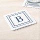 Deep Navy And White Square Border Monogram Paper Coaster