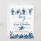 Deep Navy Floral and Silver Letters Baby Boy Boho Invitation