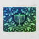 Deep Navy Menorah William Morris Pattern Postcard