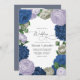 Deep Navy, Soft Lilac & Cloud Gray Floral Wedding Invitation