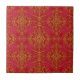 Deep Pink and Gold Elegant Damask Style Pattern Ceramic Tile