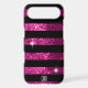 Deep Pink Glitter & Black Stripes | Monogram Case-Mate iPhone Case