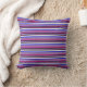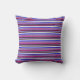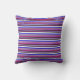 This throw pillow design features a striped pattern having colors like deep pink, grey, blue, white, and black.