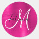 Deep Pink Ombre Foil Monogram Classic Round Sticker