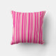 This throw pillow design features a pattern of stripes having colors like deep pink and pink.
